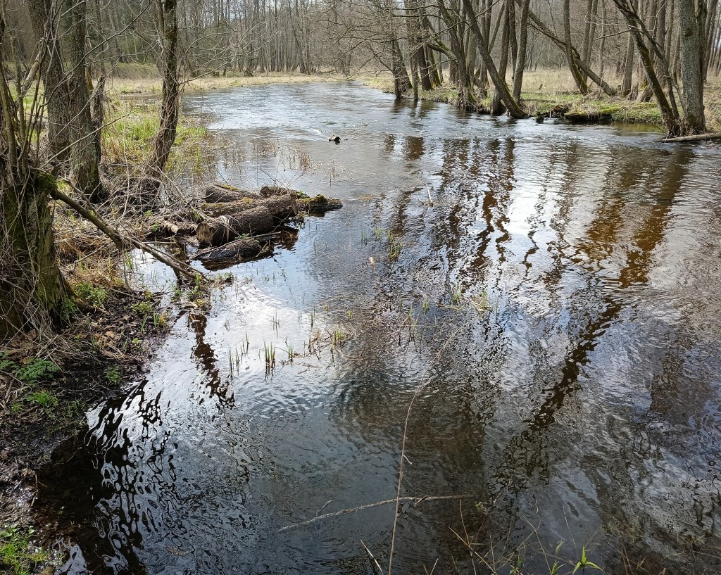 Łaźna struga jest na tym odcinku tak zachęcająca, że pomyślałem z żalem o kajaku i spływie.