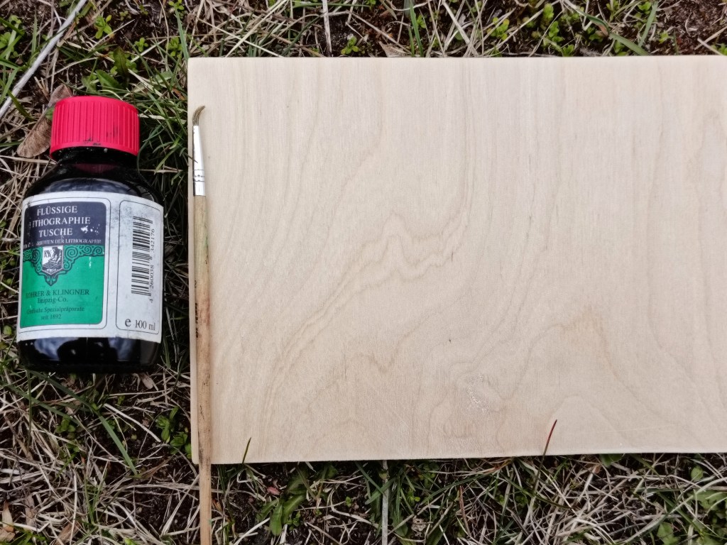 Testowy kawałek sklejki od Ani z kursu grafiki, zobaczymy czy wyjdą z niego dobre odbitki.