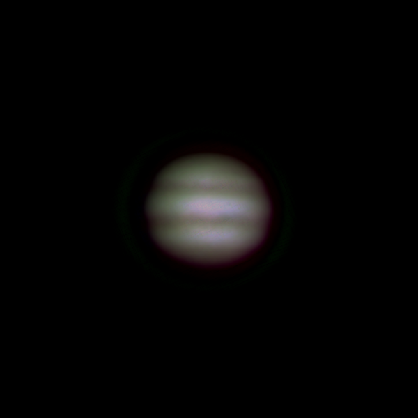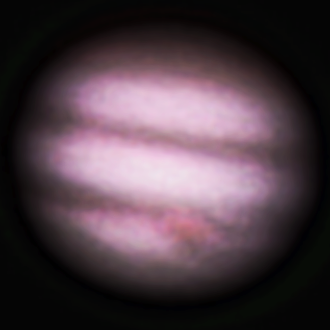 Jowisz nie dał żadnych nadziei. Już przy stosunkowo niewielkim powiększeniu 180x, 200x pływał i nie ukazał zbyt wielu szczegółów. Nie było żadnego sensu stosować soczewkę Barlowa.