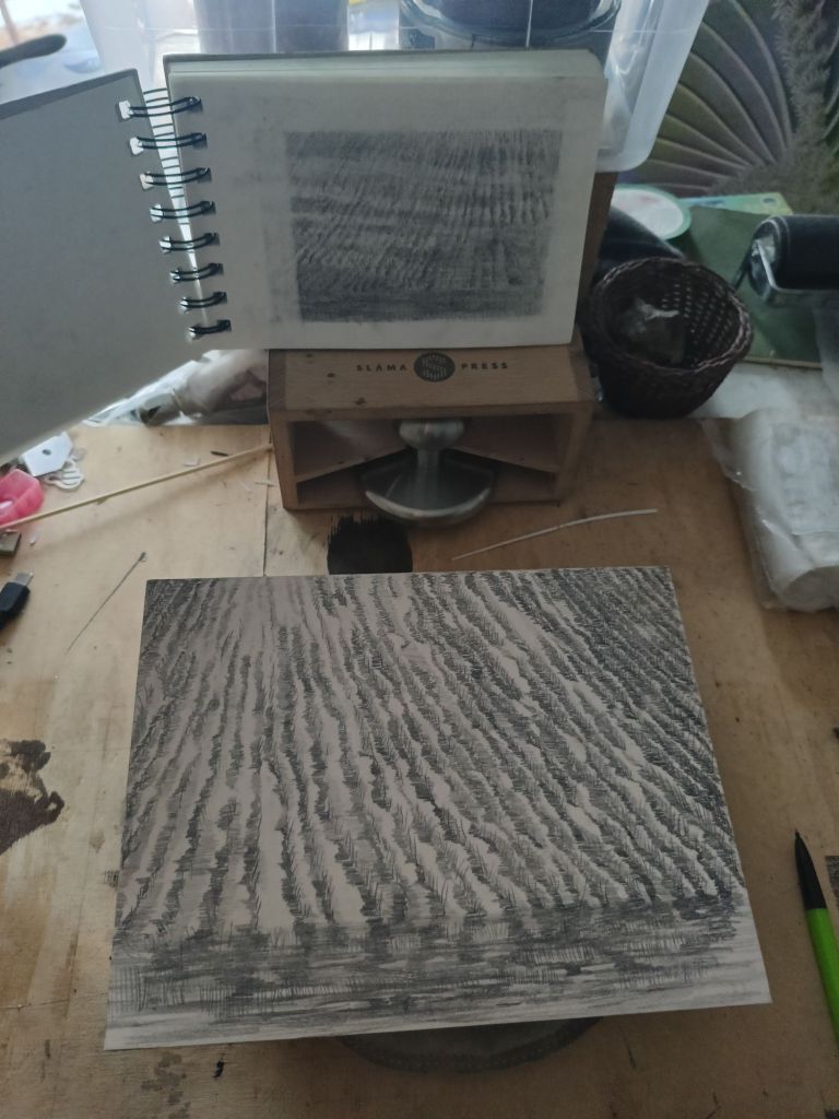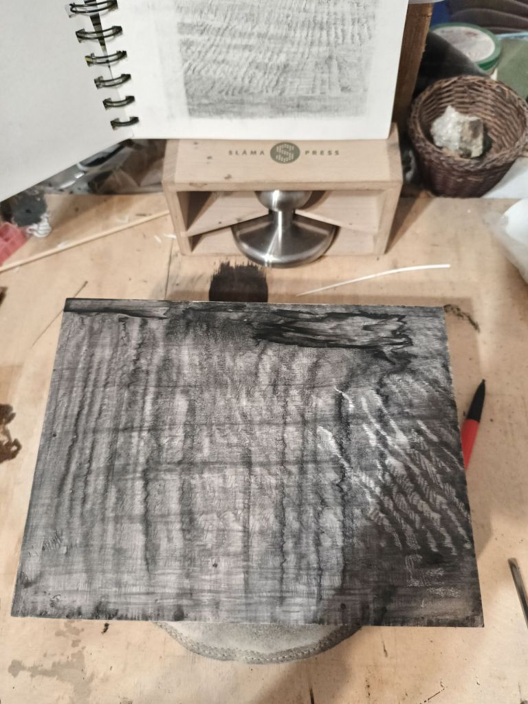 Zrobiłem sporo rysunków latem. Skończyłem jedną z małych matryc bardzo drobno cięta. Czeka sobie spokojnie na swój czas.