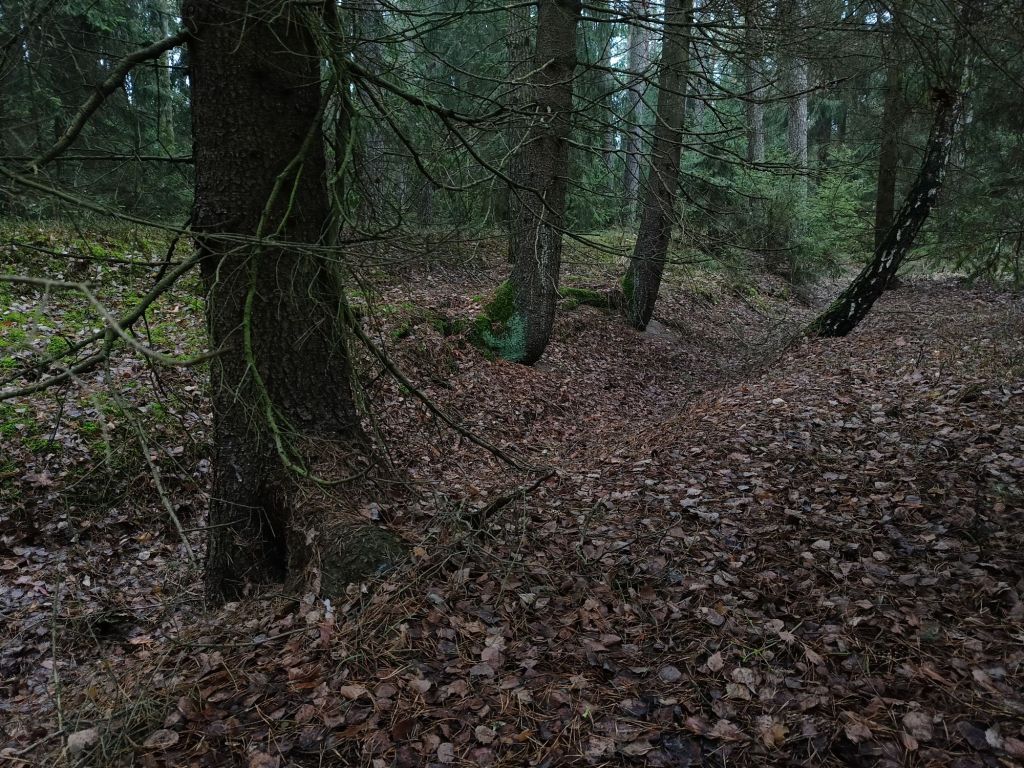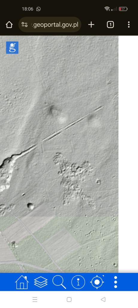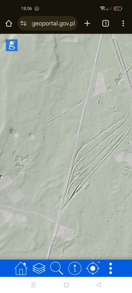 Z tego materiału, który zebrałem, robię 4 duże matryce, 15 x 20 cm spokojnie starczy materiału do końca lutego lub marca. Będę wprowadzał inne techniki. Zimowy czas bez śniegu to dobry moment na nietypowe wycieczki w plener. Lato swym pięknem zakrywa wiele śladów przeszłości, zimowa pora pokazuje oblicze ziemi, które inaczej trudno jest dostrzec. Wyprawy historyczne, to jest to, jak w przygodach Tytusa de Zoo. Najlepiej w miejsca i rejony, których wcześniej nie znaliśmy, nie muszą być daleko. Zainteresowałem się dziejami okolicy, w której mieszkam. Okazało się, że do końca XIX wieku porastała je prastara Puszcza Dybła. Ostatni skansen tradycyjnego bartnictwa i innych dawnych zwyczajów. Niestety, Car nakazał wycinkę do zera… Zrabowali ją Rosjanie… a była to puszcza, w której polowali Królowie… Ehhhh i słuch po niej zaginął. Zniknęły wiekowe drzewa pamiętające dawne dzieje i tajemnice. A ziemia była licha, piaszczysta, w okolicy powstało nawet powiedzenie „Bieda jak na Kapicach.” Więc nie dziwi fakt, że znów rośnie na tych teren las. Nie tak rozległy, zwykły gospodarczy las nasadzony ludzkimi rękami. Któregoś dnia jadąc rowerem swoją stałą trasą, zauważyłem dziwny szeroki i wysoki nasyp, długości półtora kilometra, stawał się dziwnie wysoki. Miałem zagadkę. Pomyślałem, jakaś bardzo stara nieużywana od wieków droga, ale nie pasowała wysokość, około 2 metrów i więcej w niektórych miejscach. W końcu 😁 użyję Lidaru, takiej specjalnej opcji w mapach na portalu geologicznym. Okazało się, że to linia kolejki do transportu wycinanej puszczy zbudowana jeszcze za Cara.