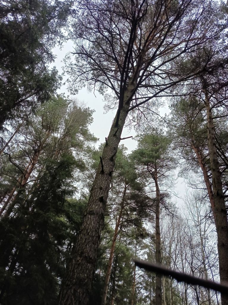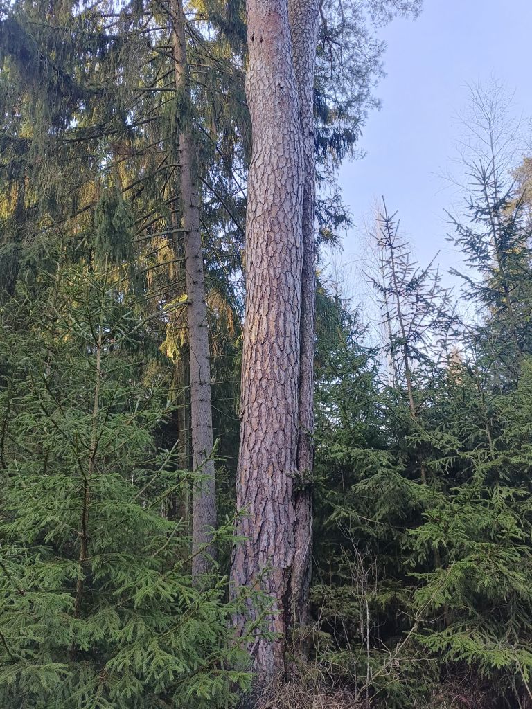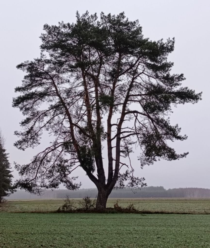 Ta ogromna sosna na pewno rosła jeszcze w dawnej Puszczy Dybła przed paroma, może nawet ponad trzema wiekami. Mogła być małym drzewem przed Rozbiorami Rzeczypospolitej. Ciekawe miejsce, które jeszcze niezbyt dokładnie poznałem. Świetne na plener ze szkicownikiem. Być może wewnątrz lasu jest cały zagajnik takich wiekowych olbrzymów, muszę to sprawdzić któregoś dnia, 🤣 bez pośpiechu nie wszystko na raz…
